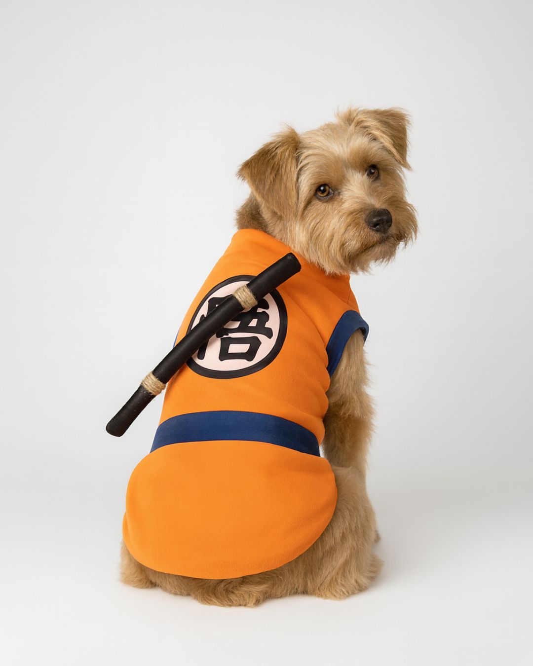 Capa hipoalergénica para perros, hecha con tela suave que protege la piel de tu engreído. Su diseño inspirado en Goku de Dragon Ball brinda comodidad, libertad de movimiento y un look único para cualquier ocasión.
